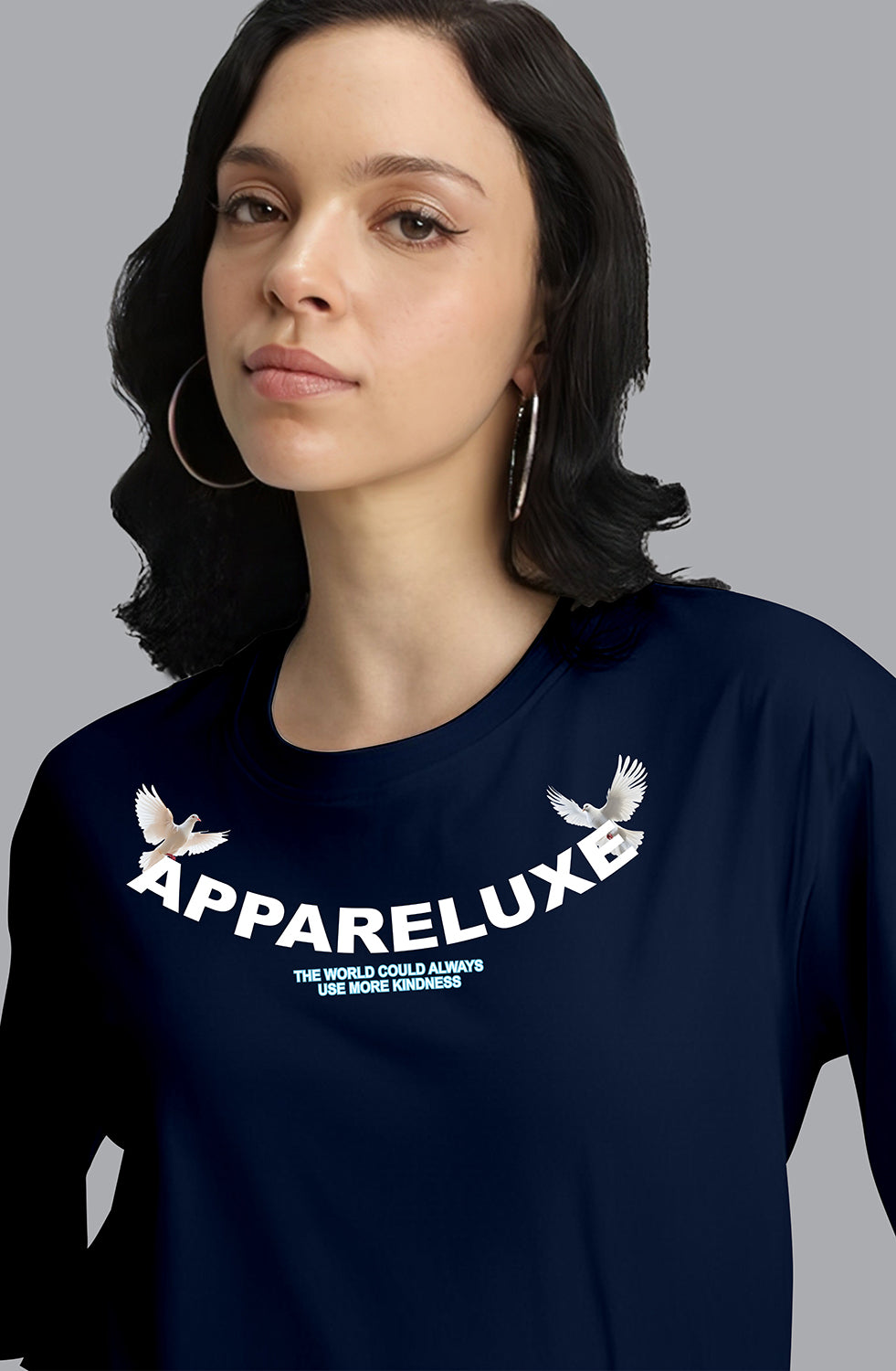 The classic crew neck and oversized fit add a relaxed streetwear vibe, while the rich navy blue shade makes it a versatile piece that pairs effortlessly with jeans, joggers, or shorts. Whether you’re lounging at home, running errands, or stepping out with friends, this sustainable oversized tee is your go-to fashion essential.